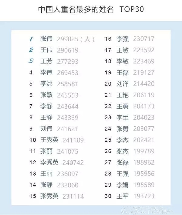 中國首份姓名報告出爐,原來這些名字最受歡迎!